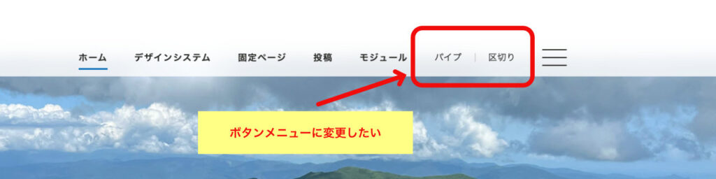 デフォルトで「パイプ区切り」となっているメニューを、テーマ内にすでにあるメニューに変更する場合は、以下の通り作業してください。